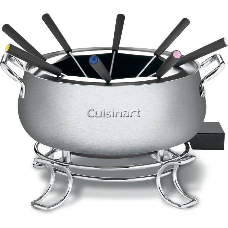 - The Cuisinart Fondue Set is an exquisite addition to any culinary enthusiast’s kitchen, designed to elevate your dining experience with its elegant and functional features. This 6-piece stainless steel fondue pot is crafted from high-quality materials, ensuring durability and even heat distribution for perfect melting of cheese, chocolate, or oil.